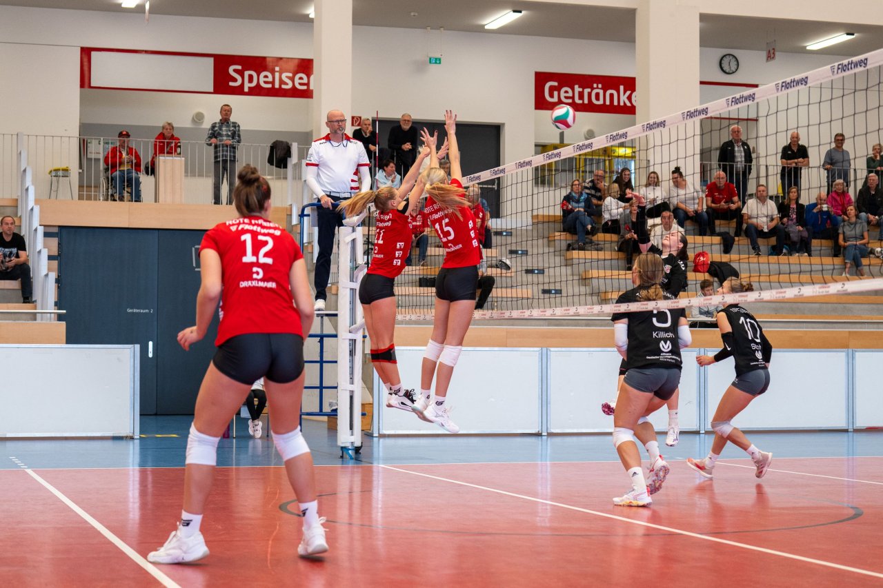 Im zweiten Abschnitt musste Xavier Perales bereits nach dem 0:4 eine Auszeit nehmen, die bis zum Kleinaitinger 7:4 aber folgenlos blieb. Dank Leni Tiefenbeck und Diana Vavrek gingen die Gäste mit 8:7 in Führung und bestimmten anschließend das Geschehen. Mit Lea Müller an der Aufschlaglinie punkteten die Niederbayerinnen über alle Positionen bis zum 18:11. Noch einmal kamen die Schwäbinnen auf 16:18 und 18:21 heran. Am Ende sorgte Valentina Culaciati mit einem Block für den Satzausgleich. Äußerst spannend verlief der dritte Durchgang, in dem zunächst die Gastgeberinnen mit 7:6 vorne lagen und die Führung bis zum 15:13 verteidigten. Aber die Raben spielten nun wie aus einem Guss, machten mit Maja Feuerleien, Diana Vavrek und Marina Kräh im Service Punkt um Punkt und lagen nach einem Block von Doleres Goday Pastore 22:15 vorne. Die Mädchen von Trainer Julian Birkholz kamen nach aufmerksamer Blockarbeit noch einmal auf 21:23 heran, bevor Valentina Culaciati das 25:21 gelang.