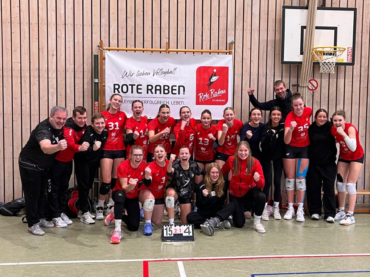 Somit sollte am späten Samstagnachmittag die Überkreuzpartie gegen den ASV Dachau über die Wahrung der Chancen zum Weiterkommen entscheiden. Und die Vilsbiburgerinnen ließen nichts anbrennen und setzten sich mit 2:0 (25:10, 25:21) durch. Am Sonntagmittag ging es im Halbfinale gegen den TSV Mühldorf bereits um die Qualifikation für die bayerische Meisterschaft, doch die Gastgeberinnen erwiesen sich als zu konstant und gewannen mit 2:0 (25:18, 25:18). Die Partie um den dritten Platz, erneut gegen Unterhaching, bot die letzte Gelegenheit, den Traum zu verwirklichen. Doch im ersten Abschnitt lief nicht viel zusammen. Schnell führten die Oberbayerinnen mit 6:0. Nur einmal wackelte deren Führung, als die Raben auf 7:8 aufholten. Danach zog Unterhaching jedoch unwiderstehlich bis zum 25:14 davon. Doch die Niederbayerinnen steigerten sich enorm, zwangen den Konkurrenten beim Stand von 9:1 bereits zur zweiten Auszeit und sicherten sich den zweiten Satz ungefährdet mit 25:18. Da auch der Tiebreak klar mit 15:4 gewonnen werden konnte, freute sich Xavier Perales über die Leistung: „Die Mädchen fanden an beiden Tagen zunehmend besser ins Spiel. Am Sonntag schlichen sich gegen Mühldorf, das ganz wenig Fehler machte, einige Ungenauigkeiten ein, was sich im ersten Satz gegen Unterhaching wiederholte. Aber wir fanden Lösungen, die zu großer Angriffswucht und gefährlichem Service führten. Erneut hat uns die Mannschaft mit ihrer Spielweise und ihrem Können erfreut.“ Im Kader standen: Dolores Gogoy Pastore, Leylani Kelm, Franziska Luginger, Lea Müller, Lea Schmiedmeier, Melisa Seibel, Leni Tiefenbeck, Diana Vavrek, Nike Wallenstein, Yevheniia Elkina, Amelie Eberl und Franziska Klingmann.