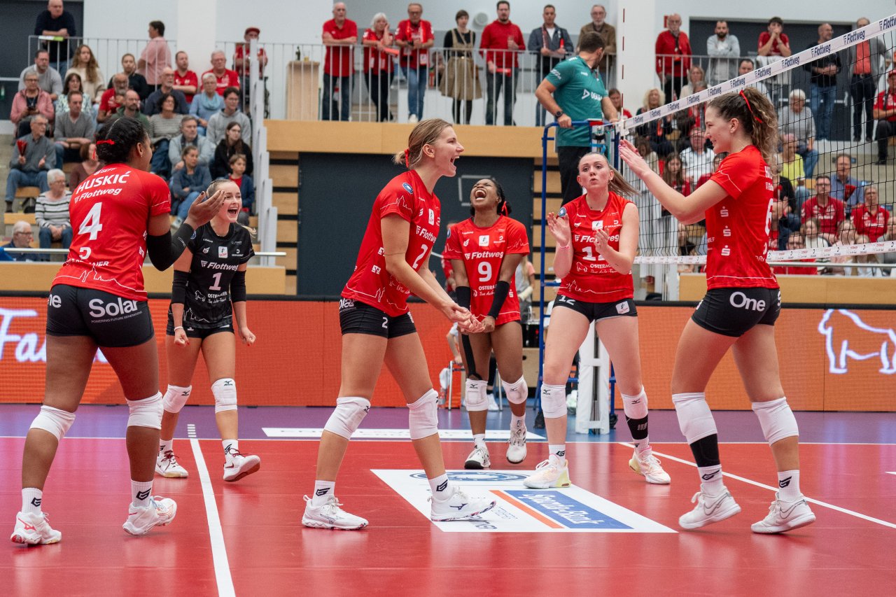 Die Spielerinnen der Roten Raben wollen am kommenden Samstag nach dem Spiel gegen Leverkusen mit ihren Fans beim letzten Heimspiel ein tolles Fest feiern.