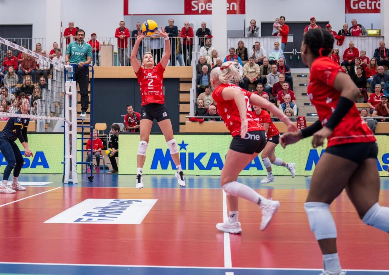 Was dann folgte, war eine absolute Demonstration der spielerischen Überlegenheit der Roten Raben: Die Mannschaft präsentierte sich als kompakte Einheit, die absolut souverän Spiel und Gegnerinnen beherrschte. Das Raben-Team spielte wie aus einem Guss: Mit den Aufschlägen wurde bereits Druck gemacht, in Block und Abwehr waren alle Raben-Spielerinnen hellwach, Pia Fernau setzte ihre Mitspielerinnen gekonnt und variantenreich ein und die Angriffe wurden von allen Positionen erfolgreich abgeschlossen. „Es war ein schwieriger Start, aber das haben wir erwartet“, meinte Raben-Spielführerin Pia Fernau nach dem Spiel. „Das wir im zweiten und dritten Satz so dominant auftreten können, haben wir zwar nicht erwartet, doch ich muss auch sagen, dass wir als Team supergut zusammengearbeitet haben“.