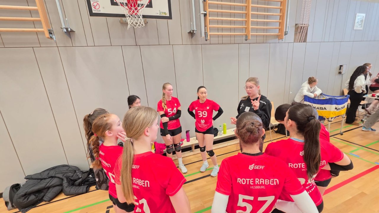 Die Mädchen von Gerhard Schemmerer erwarteten am Samstag zwei Gegner unterschiedlicher Spielstärke in der Gymnasiumhalle. Gegn den TSV Taufkirchen II lagen sie bereits mit 2:0 in Führung (25:17, 25:23), bevor die Gäste nach Sätzen ausglichen (19:25, 19:25). Im Tiebreak ging zunächst Taufkirchen bis zum 8:7 in Führung, bevor den Raben sieben Punkte in Folge gelangen und der dritte Matchball zum 15:10 verwandelt werden konnte. Chancenlos blieb man gegen den eine makellose Bilanz aufweisenden TSV Rottenburg. Der Tabellenführer setzte sich glatt mit 3:0 (25:8,25:19, 25:9) durch.